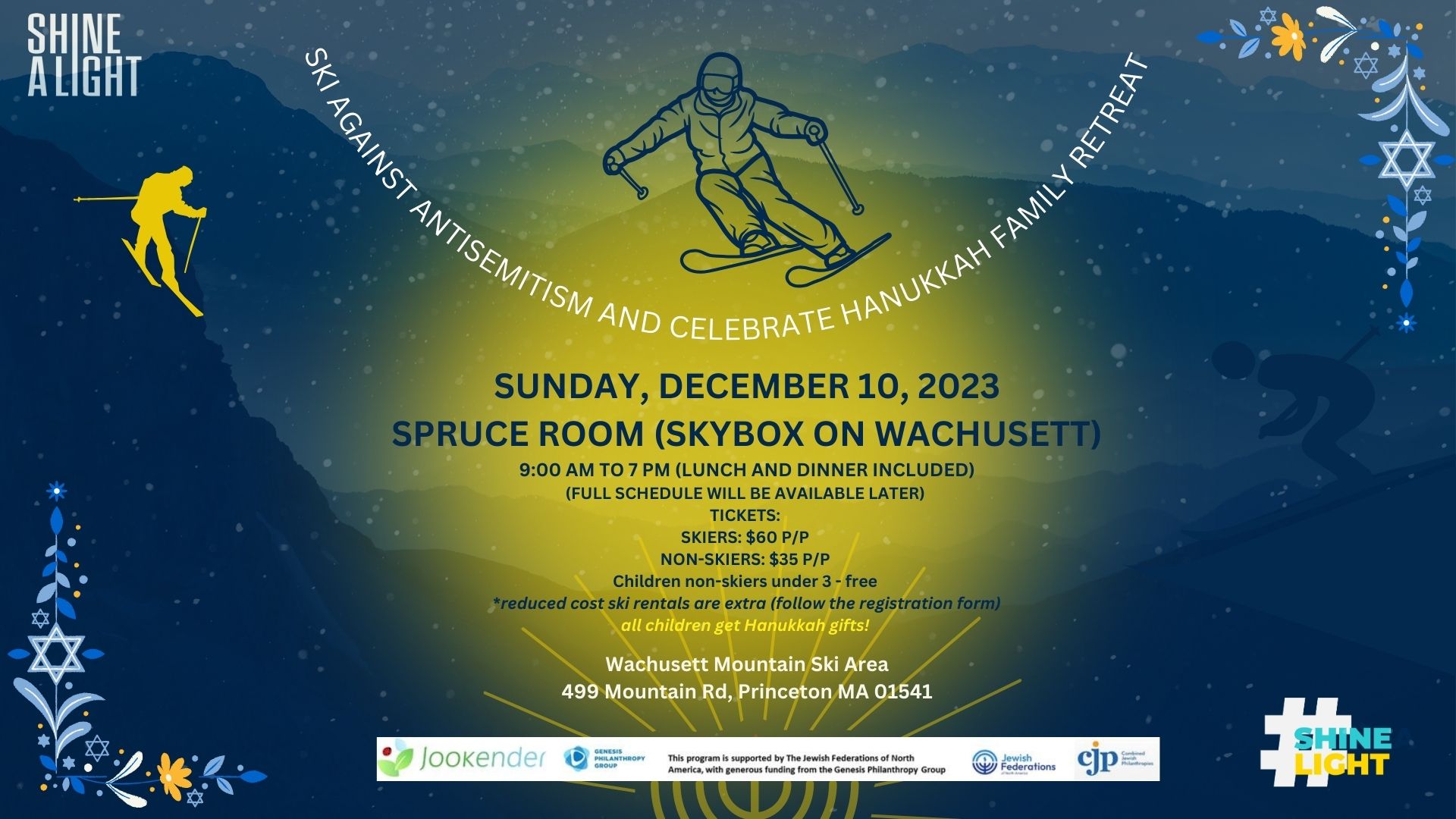 What’s included: 2 meals (Lunch & Dinner), all snacks, all activities, and a lift ticket for the skier.